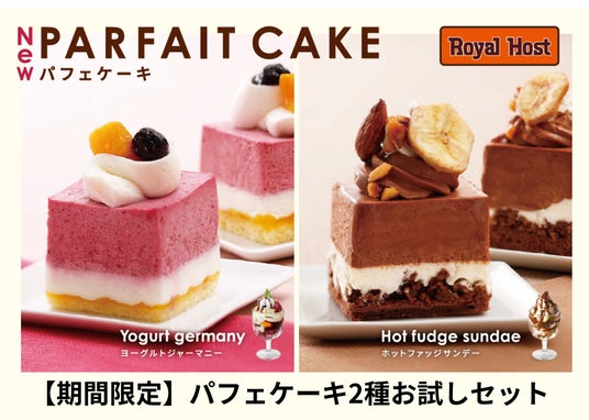 世界各国の料理を楽しめる家庭用フローズンミール「ロイヤルデリ」は、ロイヤルホストのグランドメニューとして、長年お客様から愛されてきたパフェメニューをイメージした新商品「パフェケーキ ヨーグルトジャーマニー」と「パフェケーキ ホットファッジサンデー」の2種類を9月19日(木)よりオンラインストアで販売開始いたします。全国のロイヤルホスト(一部店舗を除く)でも順次販売を開始する予定です。また、新商品発売を記念し、パフェケーキ2種類をそれぞれ1箱ずつ詰め合わせたお試しセットを11月30日(土)までの期間にてオンラインストア限定で販売いたします。
