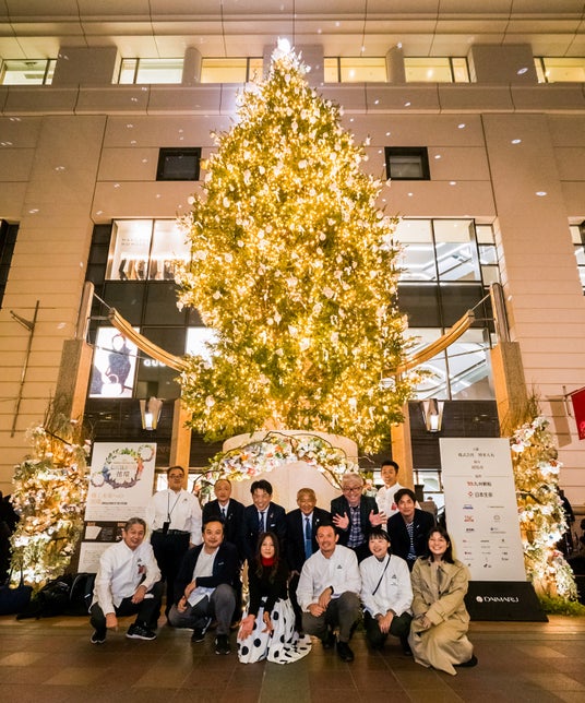 大丸福岡天神店でのクリスマス点灯式、対馬市の比田勝市長、SDGs推進課の皆さん、博多大丸九州探検隊の皆様 、NPO法人唐津Farm&Food(プレシャスプラスチック唐津)