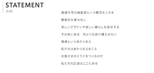 「機能と美と健康」をブランドミッションに、今後も家づくりを通じて公共の福祉へ貢献できる企業を目指して、邁進して参ります。