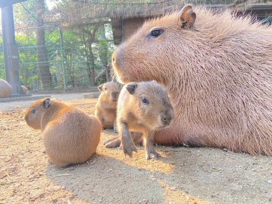 国営海の中道海浜公園(福岡県福岡市)にある動物の森で、カピバラの三つ子が生まれました!(9/2生まれ)