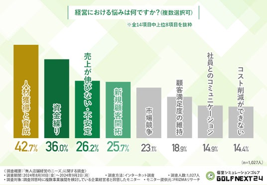 約4割の方が、人材獲得や育成などの悩みを抱えているようです。