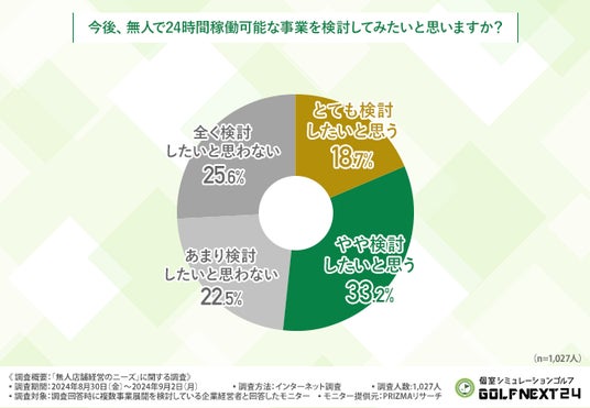 では、今後無人で24時間営業の事業を検討したいと思う方はどのくらいいるのでしょうか?