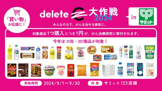 関東を中心に展開するスーパーマーケット サミットにおいては123店舗にて「deleteC大作戦 2024 inサミット」を開催。2024年度は、31社・207商品が対象商品として協力をしています。