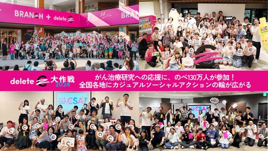 認定NPO法人deleteC(デリート・シー/代表理事:小国⼠朗)は、みんなの力で、がんを治せる病気にすることをミッションに、ふだんの暮らしの中で、がん治療研究を応援する取り組み「deleteC大作戦」を2024年9月1日(日)~9月30日(月)に全国にて実施しています。今年は、「投稿」、「買い物」、「歩く」、「学び」の4つのカジュアルソーシャルアクション(CSA)を柱に展開しています。