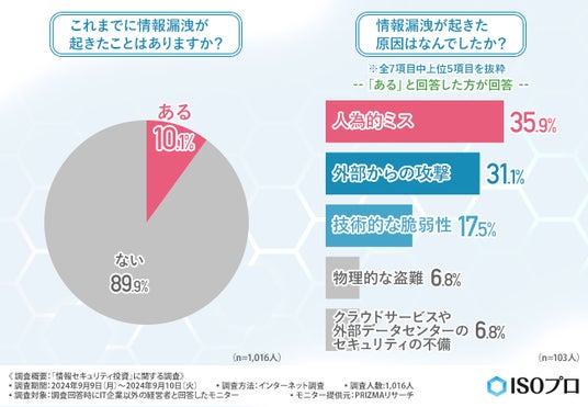 「これまでに情報漏洩が起きたことはありますか?」と質問したところ、約1割の経営者が『ある(10.1%)』と回答しました。