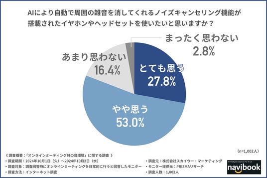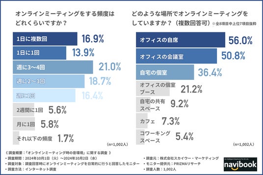 そこで今回、株式会社スカイウー・マーケティング(https://navibook.co.jp/)は、オンラインミーティングを日常的に行う方を対象に「オンラインミーティング時の音環境」に関する調査を行いました。