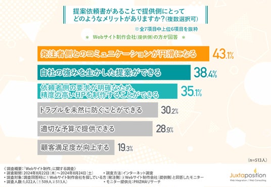 また、提案依頼書があることによって依頼者の要望が把握でき、高品質なWebサイトを制作できることやトラブルを未然に防ぐことができる点も、多くの方がメリットであると考えているようです。