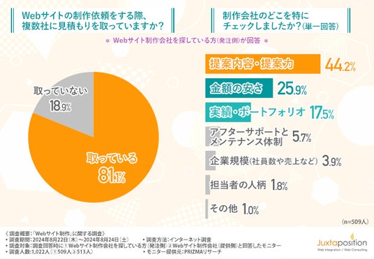 株式会社ジャクスタポジション(本社所在地:札幌市中央区、代表取締役:西山 泰史)は、1.Webサイト制作会社を探している方(発注側)2.Webサイト制作会社(提供側)を対象に、「Webサイト制作」に関する調査を実施しました。
