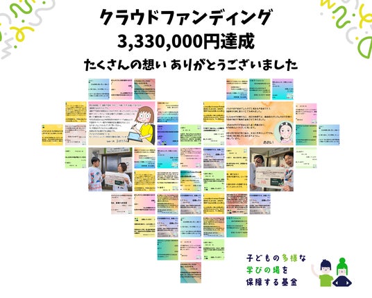 クラウドファンディング目標達成基金は2023年12月1日~2024年1月31日に300万円を目標に実施した、クラウドファンディングのご寄付を原資に設立しました。全国から200名様に総額3,330,000円のご賛同をいただきました。