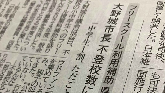 ▼不登校の小中学生にフリースクール授業料補助 福岡県内初の制度、大野城市議会が当初予算案可決」(2024年3月23日西日本新聞福岡県版)