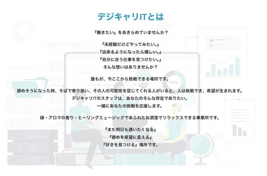 誰もがITの未来に挑戦できる場所として、デジキャリIT就労移行支援をOPEN致しました。
