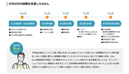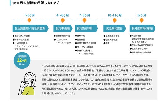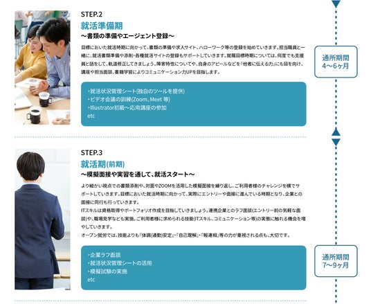 就労に必要なスキルの取得から、就活書類の準備や添削・面接同行、就職後も最大3年半の定着支援も実施