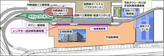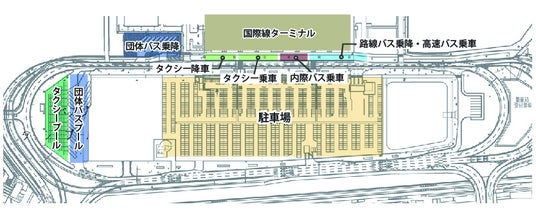 ・高速・路線バス、団体バス、タクシーなど交通機関ごとに車両の待機・乗降位置を明確化。