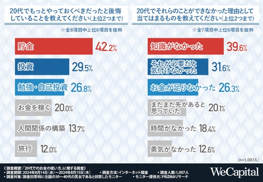 一方で、知識がなかったり必要だと気付けなかったりしたことから、20代にもっと貯金や投資をやっておくべきだったと後悔していることも本調査で明らかになりました。