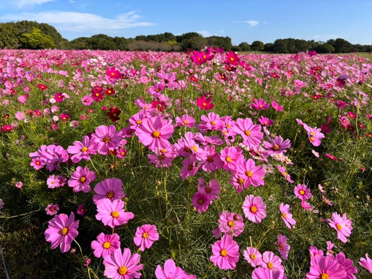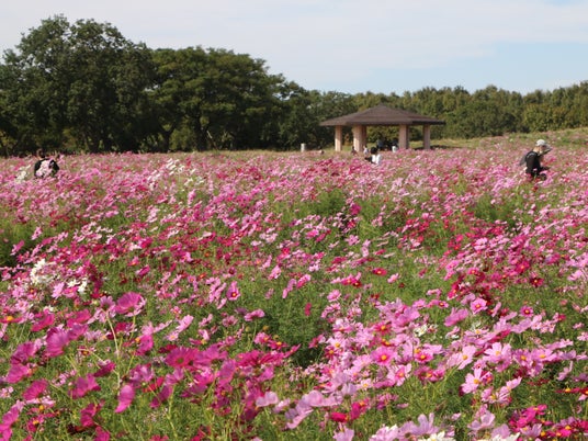 海の中道海浜公園(福岡県福岡市東区)では、花の丘の100万本のコスモスが見頃を迎えています。来週半ば頃に満開となり、ピンクの絨毯のように広がる景色が楽しめます。今年は夏の酷暑や少雨の影響で約10日開花が遅れ、見頃は11月上旬まで続きます。