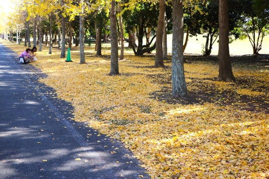 落葉で黄色く染まった地面