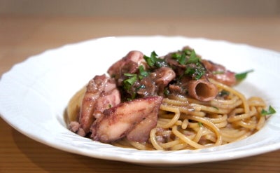 ベースに2種類のブランデーを使い、栗の渋皮煮、アーモンドミルク、マスカルポーネチーズを合わせてブレンダー(ミキサー)にかけて完成となる。