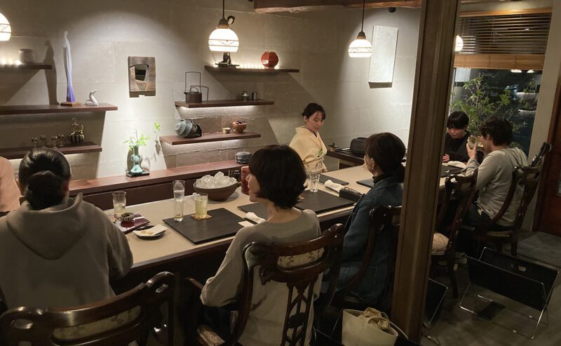 そしてその「オーフィルドゥジュール」があったところに3月にオープンしたのが「絲(いと)」という1階はお茶とお酒、2階は着物のレンタルと着付けをしてくれるお店です。お昼から開いてるのでご近所のママさんたちのティータイムにもよいですし、赤坂や警固で食事した後にお酒を飲みに行くのもよいでしょう。また、特筆すべきは桜坂エリアの老舗町寿司「彦寿し」の出前が取れるんです。これもまたポイント高めですね。