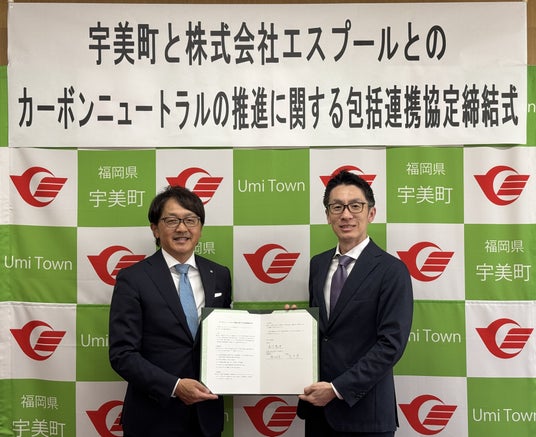 株式会社エスプール(本社:東京都千代田区/代表取締役会長兼社長:浦上 壮平/以下、「当社」)は、本日、福岡県宇美町(町長:安川 茂伸)と包括連携協定を締結し、同町における地域資源を活用したゼロカーボンシティの実現に向けた取り組みを開始することとなりました。