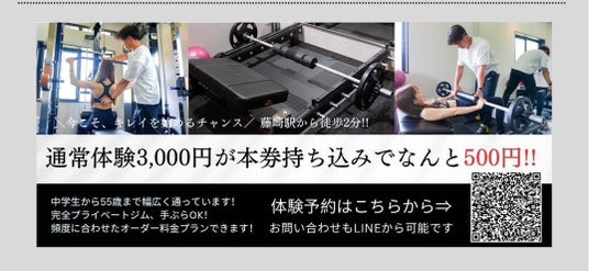 ・通常3,000円のパーソナルトレーニングが【500円】で体験可能!