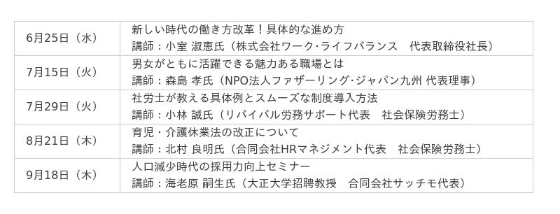 このような背景を受け、福岡県では柔軟な働き方及び働き方改革に係る制度導入を促進するためのセミナーを企画し、当社が受託しました。