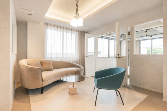 貸室内はブティックホテルのようなラウンジや水回りとシンプルかつ機能性のある執務室で、コンパクトながらもメリハリのある空間に仕上がります。