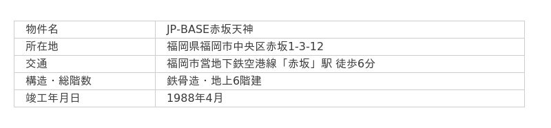 場 所 : JP-BASE赤坂天神(福岡県福岡市中央区赤坂1-3-12)