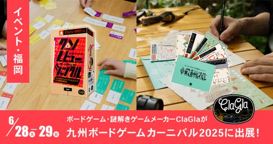 ClaGlaが九州ボードゲームカーニバル2025に出展!大人気『クソレビュージャングル』や、『封筒謎シリーズ』をイベント特別価格で販売します。