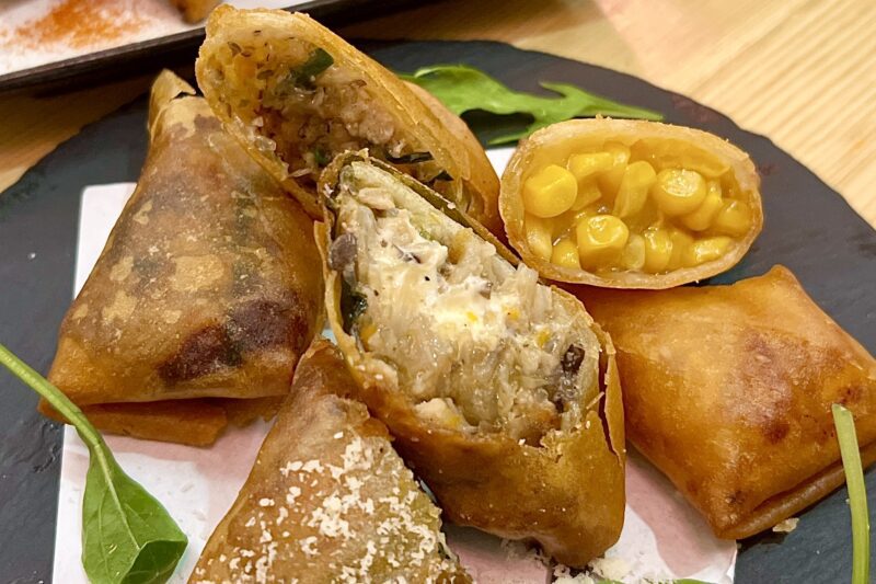 ここの揚春巻きは、6種の野菜をたっぷり詰めた手包みスタイルで、外はパリッ、中は意外と軽いのが特徴。皮は、東京にある昭和47年創業の春巻き皮専門店から取り寄せているこだわりよう。定番のレギュラーメニュー9種類に加え、夏季限定の2種類を合わせて全11種類もある。