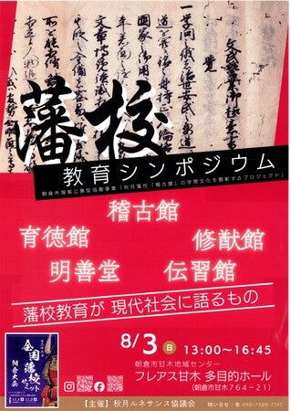 シンポジウムでは、福岡における藩校教育の意義や価値をあらためて見つめなおし、秋月藩校「稽古館」の教育への理解を一層深めていきます。