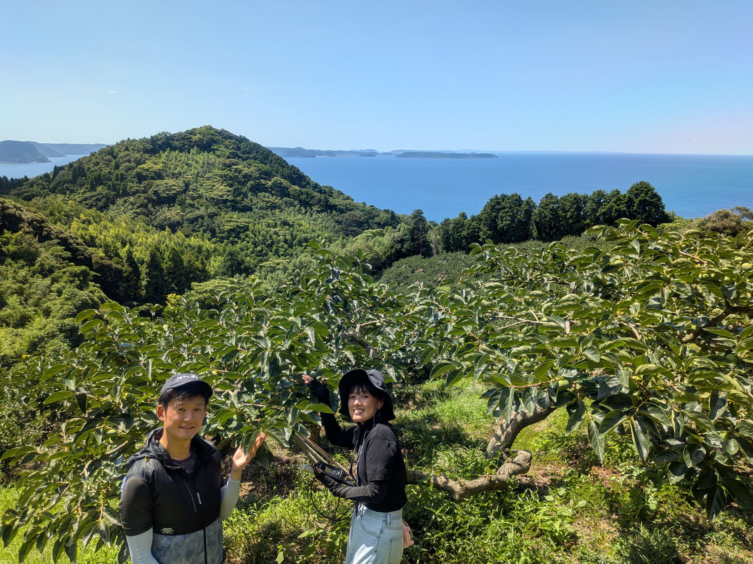 今回は糸島市二丈鹿家、内場賢聖さん(35)の柿畑にお邪魔してきました。