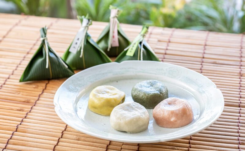 さらには、よもぎを混ぜた深緑色の生麩が、柔らかな柚子の酸味と香りの餡を湛える「ゆず入り白あん」、淡い緑色の生麩に爽やかな緑茶の餡を包んだ「緑茶あん」も抜群のおいしさ。薄紅色の中身は、桜の塩漬けをほんのり混ぜた「春夏限定の桜あん」で、秋冬には「紫芋あん」が登場します。