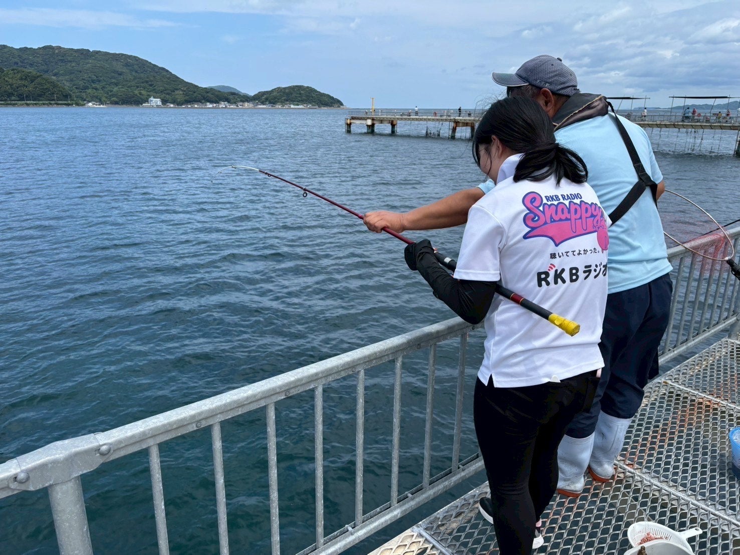 RKBラジオのキャスタードライバー・スナッピーの蒲池みなみです。8月4日放送の『Toi toi toi』(月~木・9:00-13:00)で、福岡市西区にある福岡市海づり公園に行ってきました。実は私、魚釣りは生まれて初めての経験! 前日は寝られないほどドキドキして向かったのですが、手ぶらで行っても竿やエサ、仕掛けのセットをレンタルできると聞いて、ひと安心。初心者でも気軽に楽しめるのがうれしいですよね!