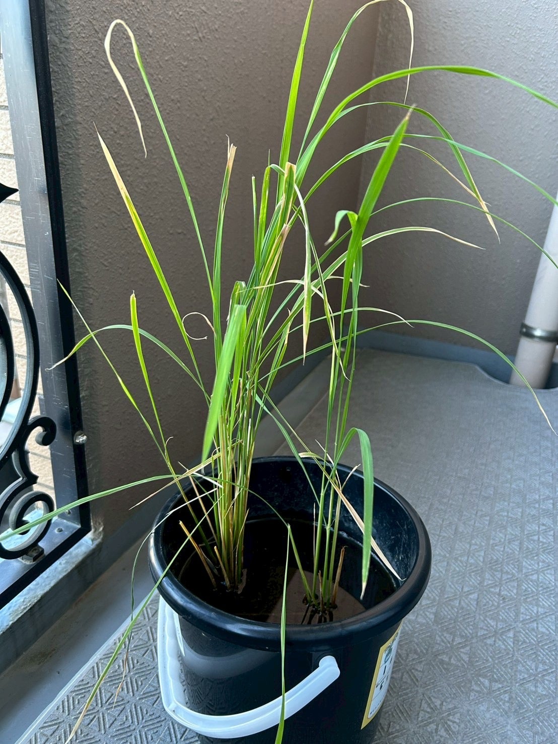 稲には負担をかけますが、一度住めなくしてみようと1週間ほど水やりを辞めたところ、急に穂がつき花まで!