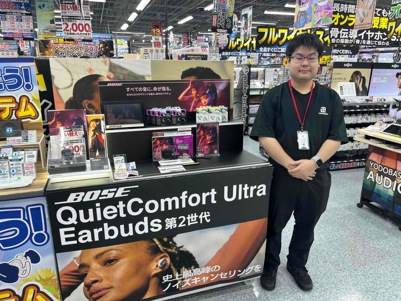 ヨドバシカメラマルチメディア博多2階ポータブルオーディオコーナーから、BOSE Quiet comfort Ultra Earbuds(第2世代)を紹介します。