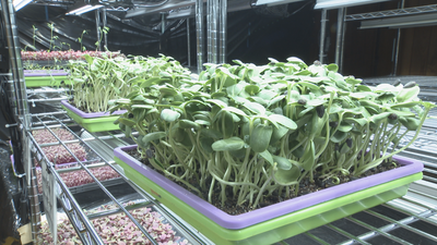 また、栄養価が高く世界的に注目されている「マイクログリーン」の室内栽培にも着手。マイクログリーンとは、発芽して10日前後の若芽野菜のこと。味や食感が良く、一般の消費者にも徐々に需要が拡大している。また完全室内栽培のため、気候に左右されず、作業も軽減できるというメリットがあり、農業従事者にとって優しい、新たな農業の形として今後期待されている。
