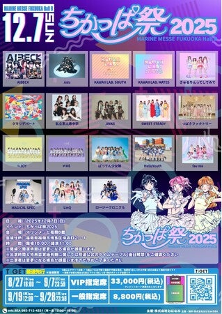 「ちかっぱ祭2025」が2025年12月7日(日)にマリンメッセ福岡B館(福岡県福岡市博多区沖浜町2-1)にて開催されます。チケットはイベントプラットフォーム「TIGET」にて最速先行チケット受付中です。