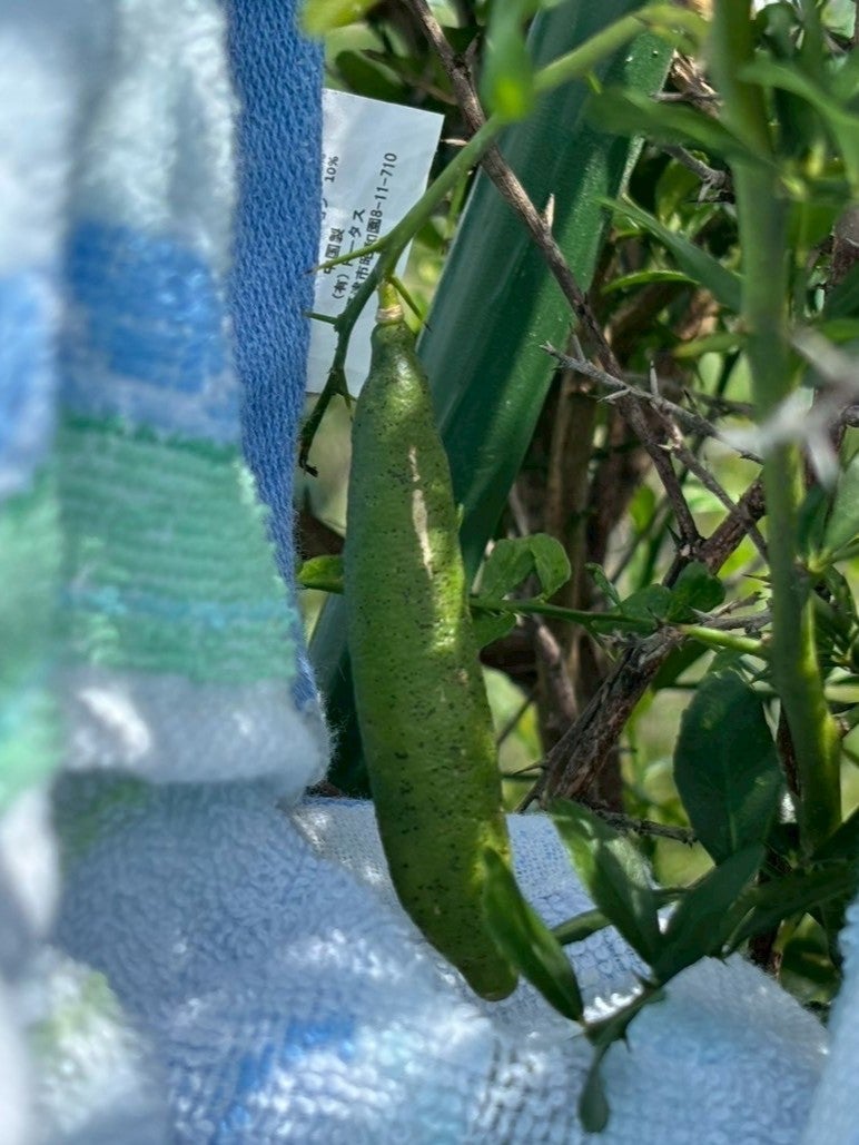 この農園では25品種80本ものフィンガーライムが栽培されています。古賀さんがフィンガーライムを育て始めたきっかけは、「何を育てようかと探していた時に出会って、ネットで取り寄せて食べたら感動したから」だそうです。