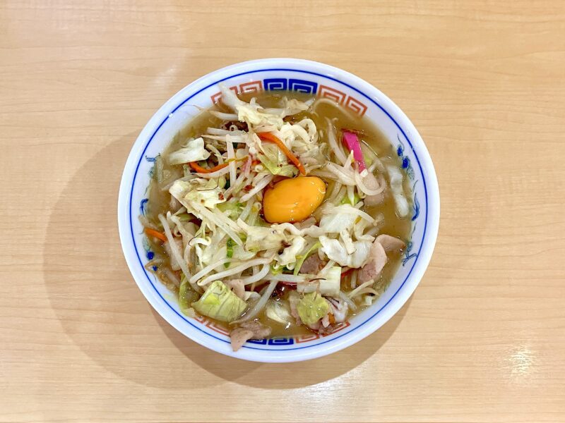 メニューにはメインの「長崎ちゃんぽん」のほかに「ラーメン」のバリエーション、そして気になるネーミングの「チャンラー」といった商品が並んでいます。大めしにギョーザ、唐揚げが付いたセットメニュー(400円~)もありますが、今回は基本の「長崎ちゃんぽん」(950円)に生玉子(100円)のトッピングを注文しました(大盛は生玉子入り)。