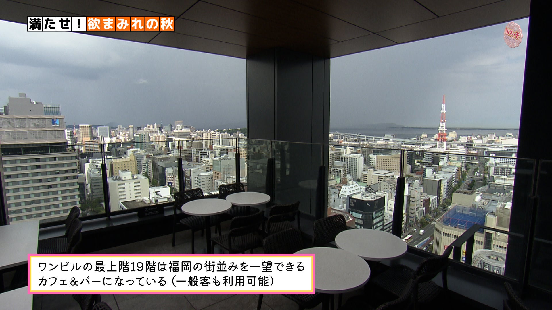 ワンビルの最上階19階にあるONE FUKUOKA HOTEL直営のカフェ&バー「THE ROOF」