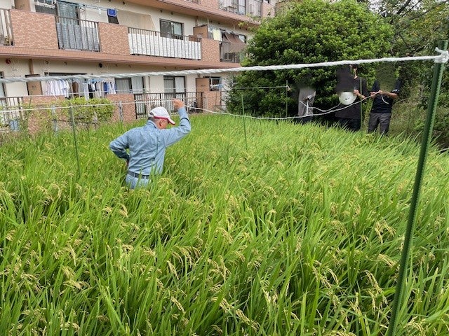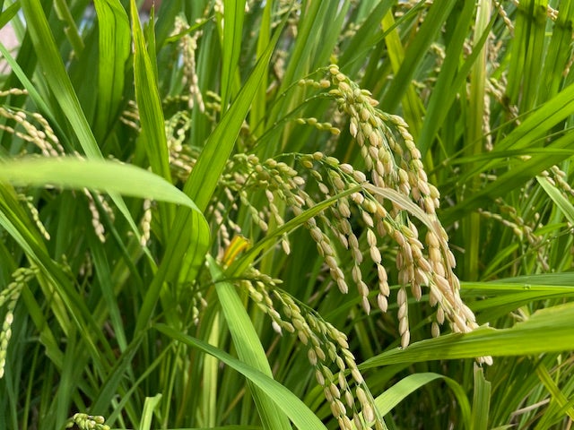 9月24日現在、田んぼはネットを張って、スズメに食べられないような措置をとっています。穂は実り、しっかりこうべを垂れてきています。今週末に水をとめ、実入の促進を進めていくように計画しております。