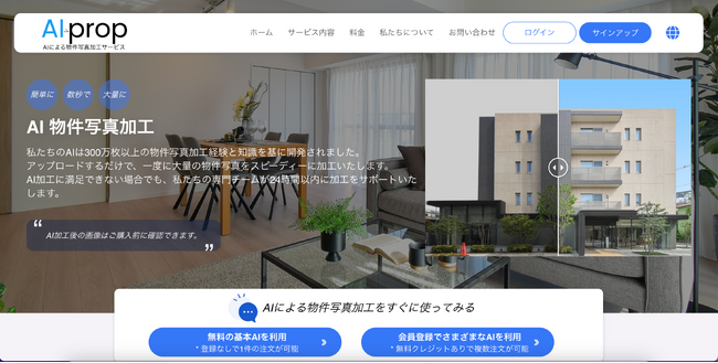A-LEADS HOLDINGS PTE.LTD (本社:10 Anson Road #31-10 International Plaza,Singapore / 営業拠点 A-LEADS Japan株式会社 / 開発拠点 A-LEADS IT Cambodia Co.,Ltd. 代表取締役:橋本元秀、以下エイリーズ) は、運営するAI物件写真加工サービス『AI-prop(AIプロップ)』のオプションサービス【物件写真AIクラウド】をリリースいたしました。自社で運営する物件写真撮影サービス『部屋フォトたのも!』で過去300万枚以上の物件写真を加工した経験を基に、物件写真加工に特化したAIを開発。これまで1枚あたり数分~数十分かかっていた編集加工作業を、かんたんに大量に完了いたします。*AIによる物件写真加工は特許出願中