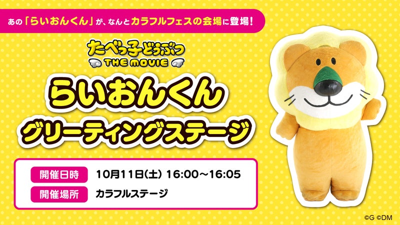 10月11日(土)は『たべっ子どうぶつ THE MOVIE』の「らいおんくん」がカラフルフェス会場に登場します。