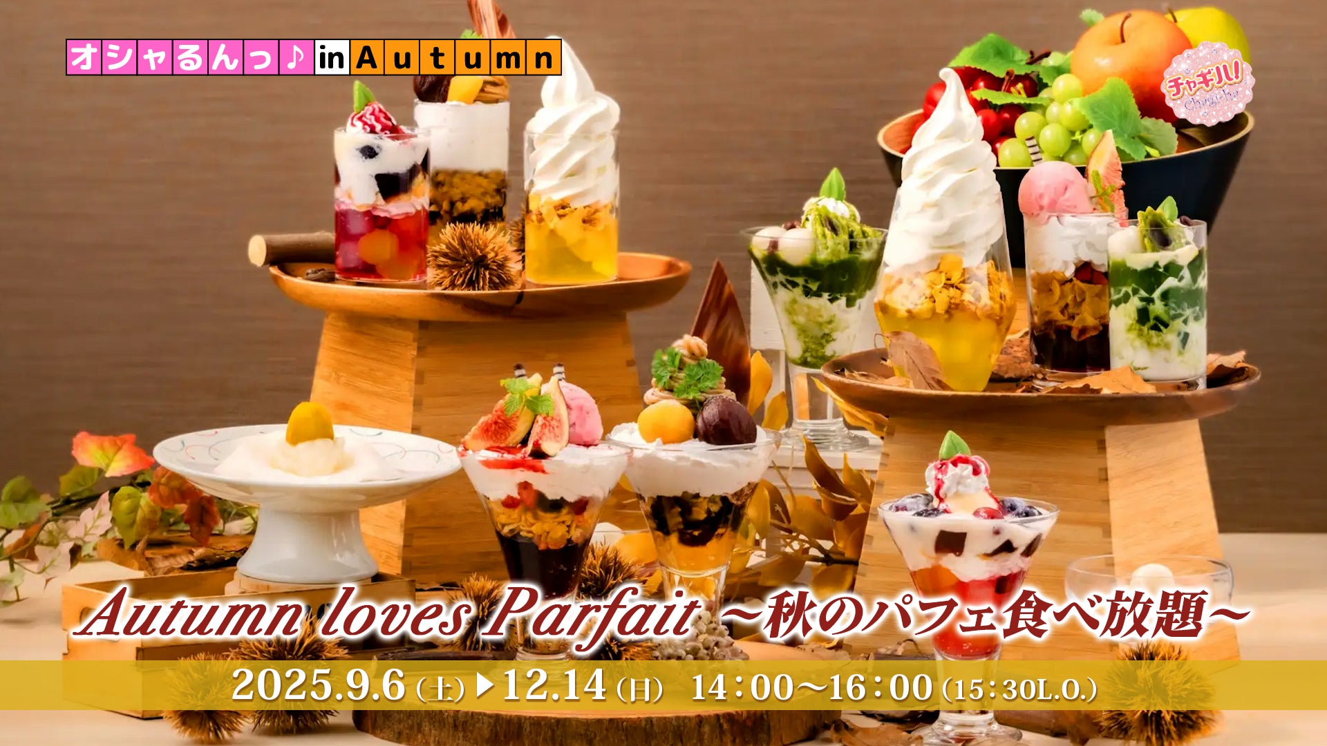 オータム・ハーベスト秋のパフェ食べ放題は秋の収穫祭をイメージした5種類のパフェが楽しめます。
