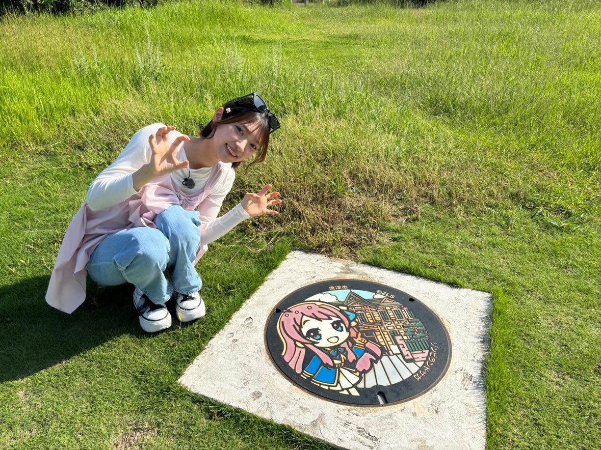 唐津市歴史民俗資料館の近くには、主人公・源さくらのデザインマンホールがあるので、ぜひ探してみてください。