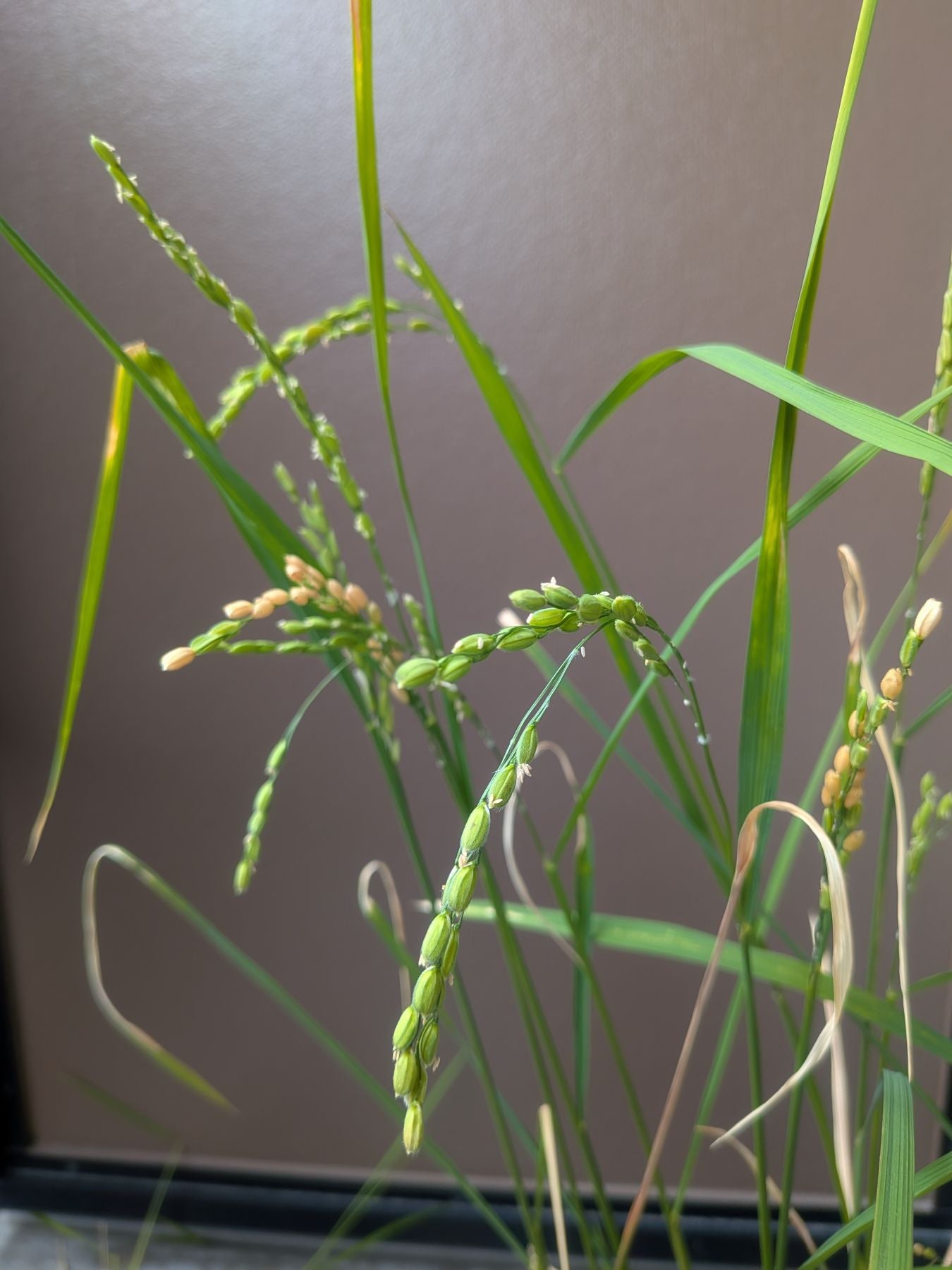 こうべを垂れないのは籾の中身が入ってないからっぽいです…。何粒できるかなあ、お米。