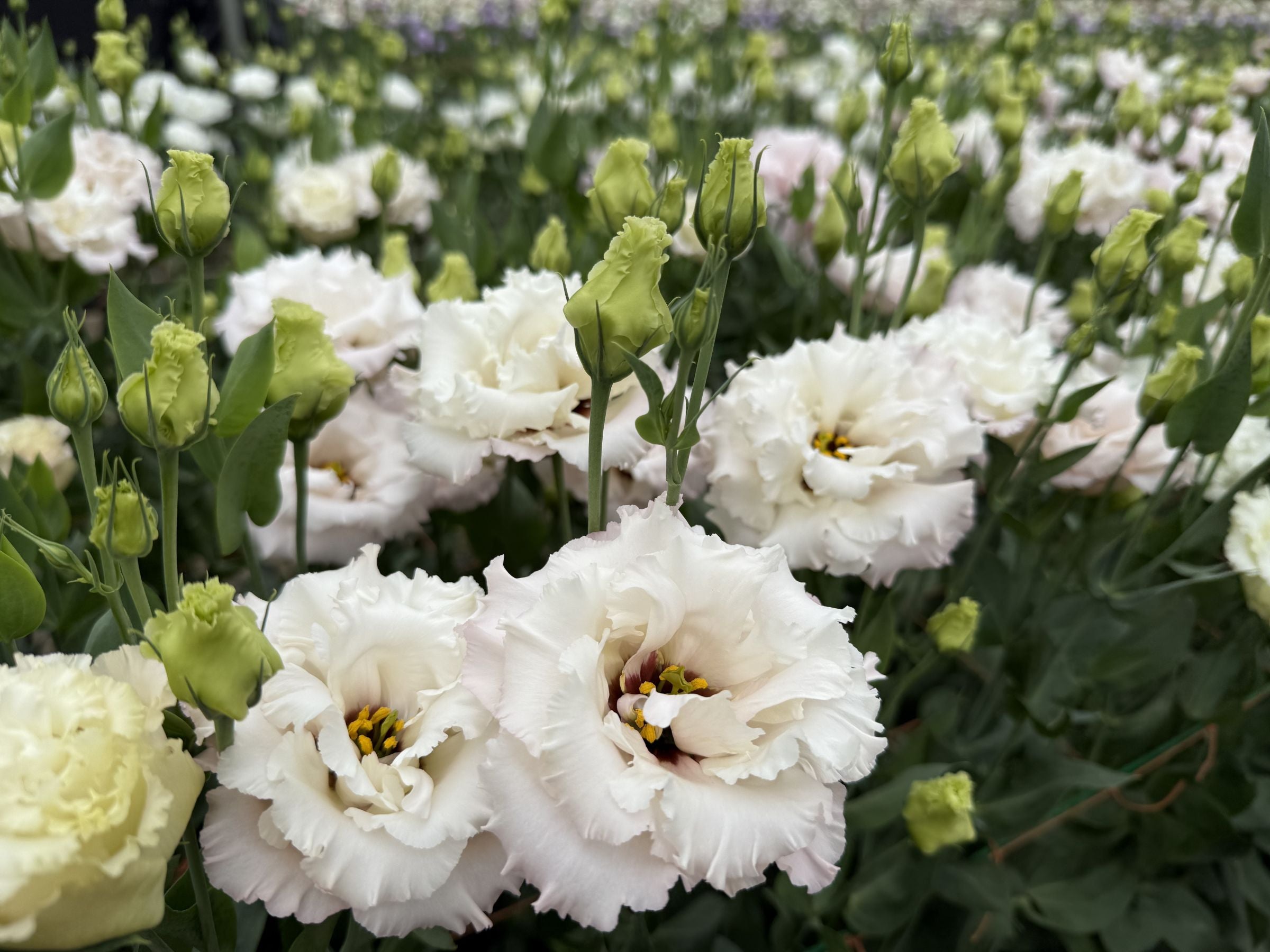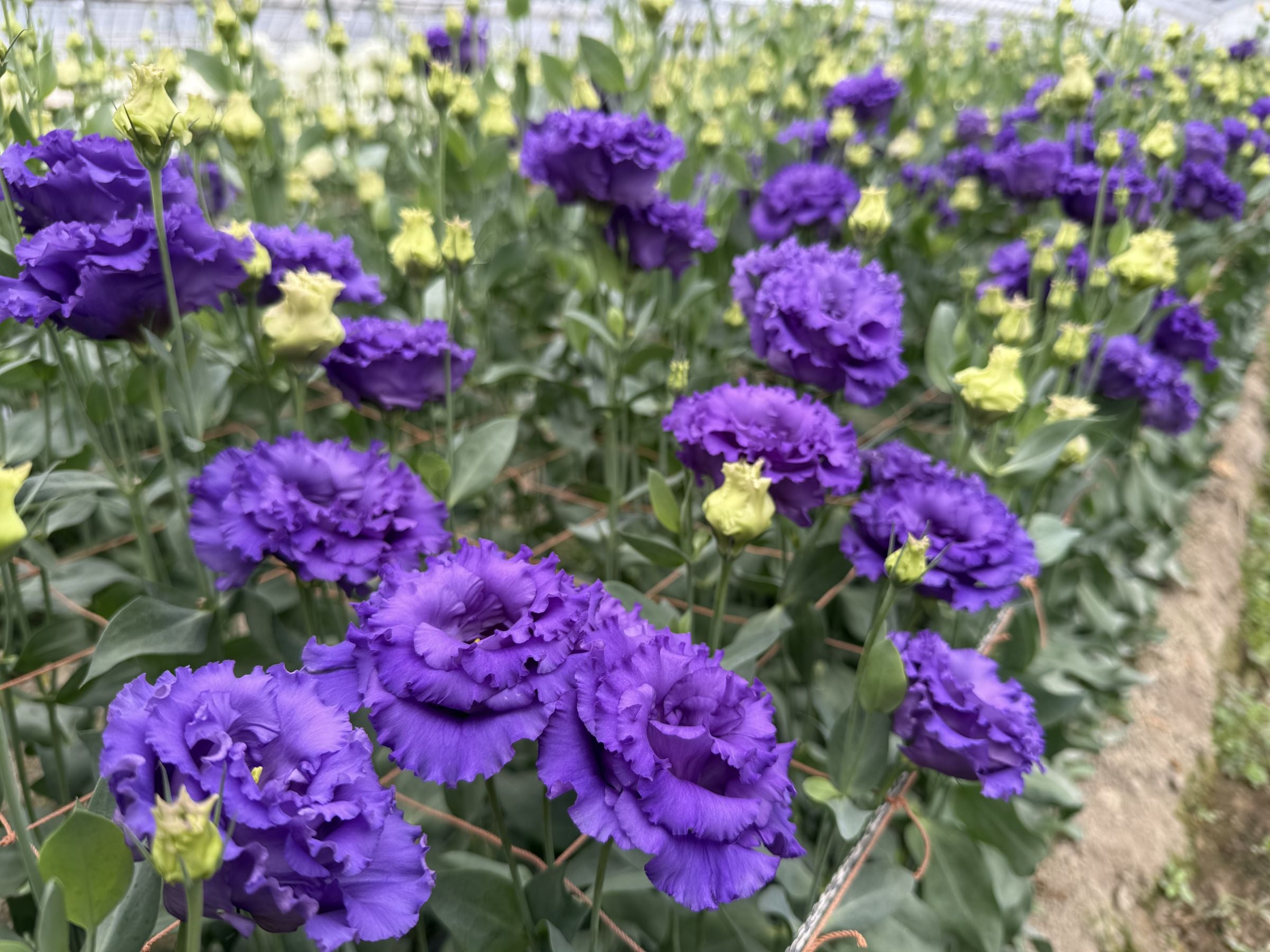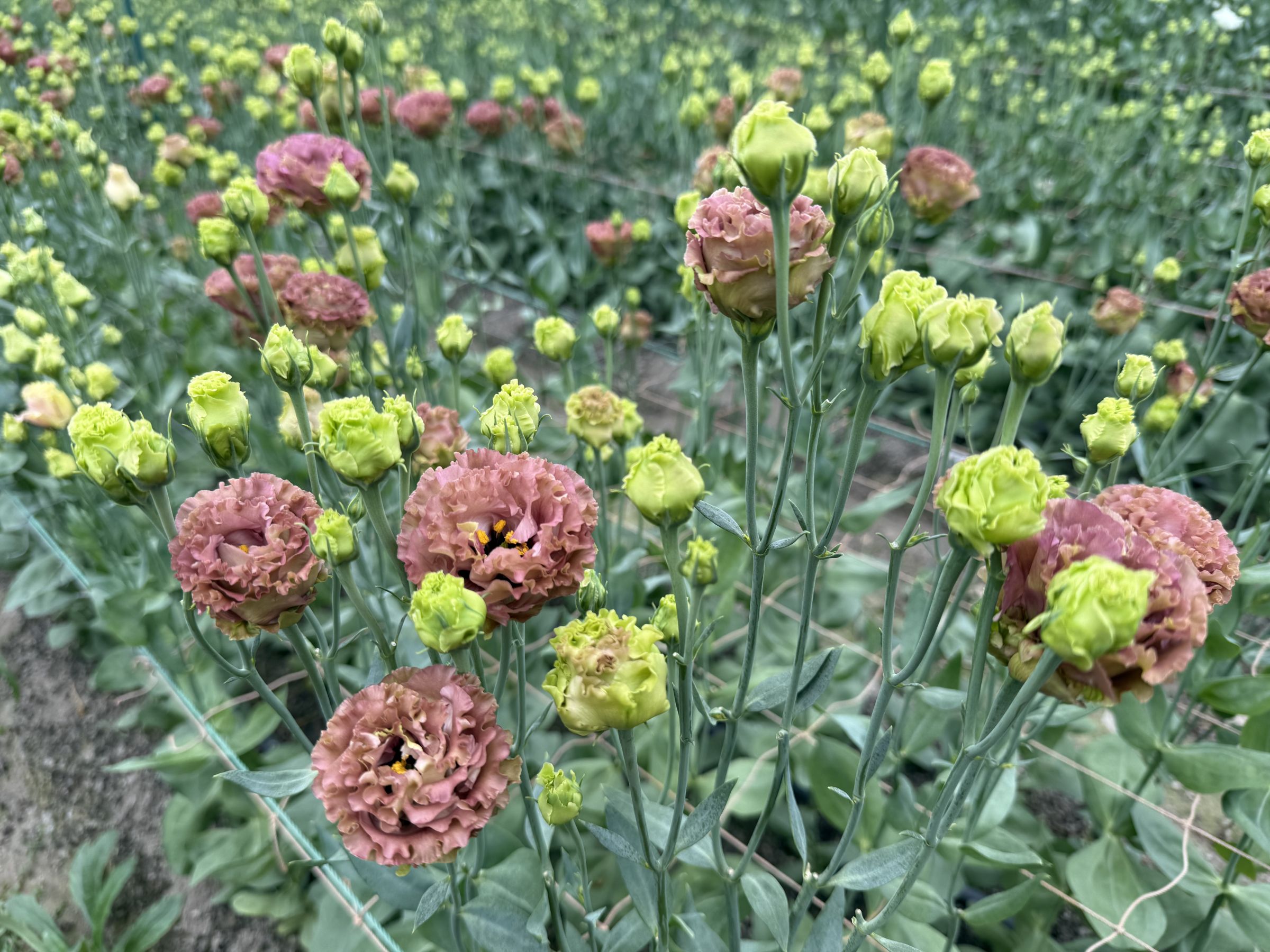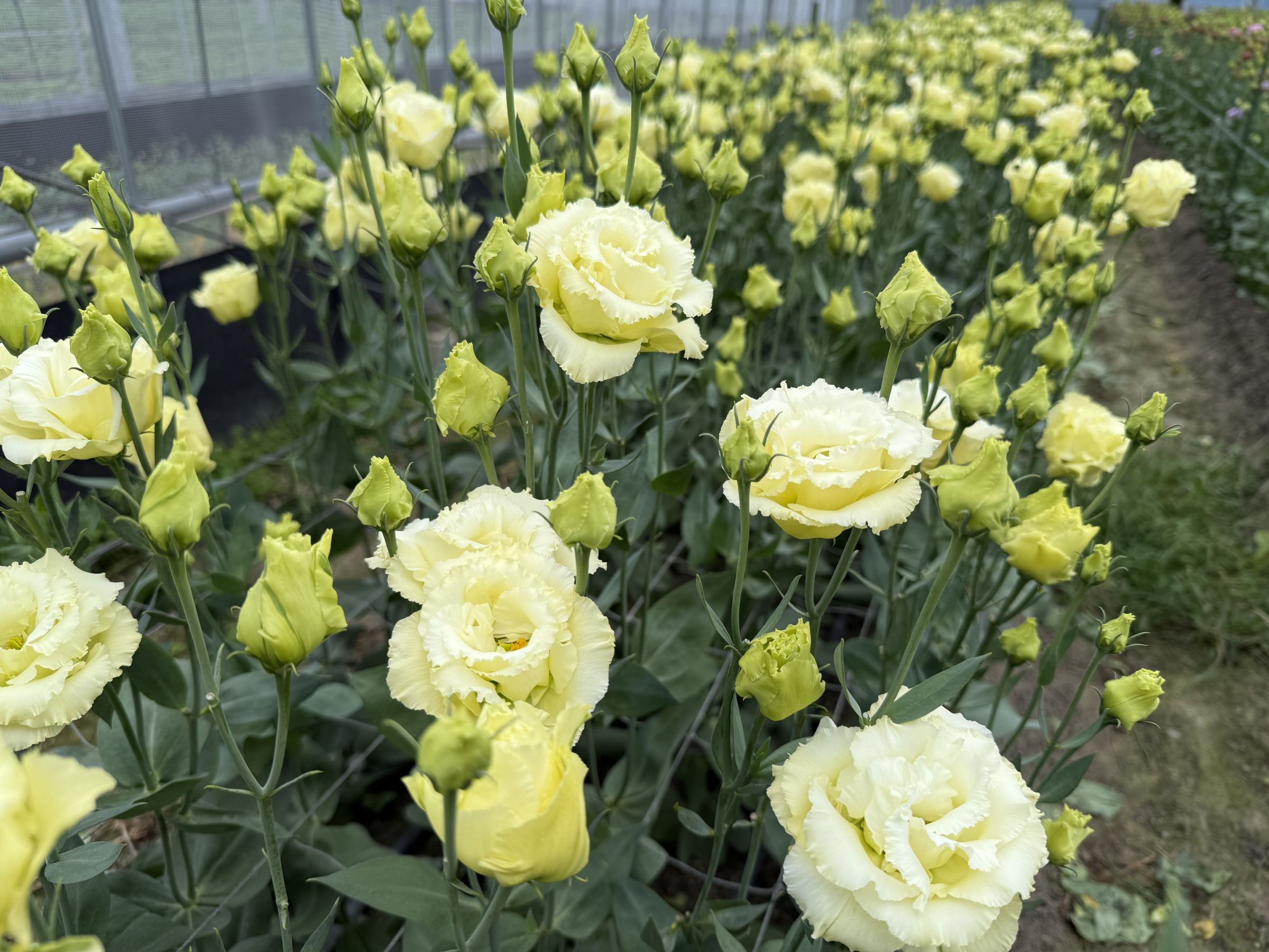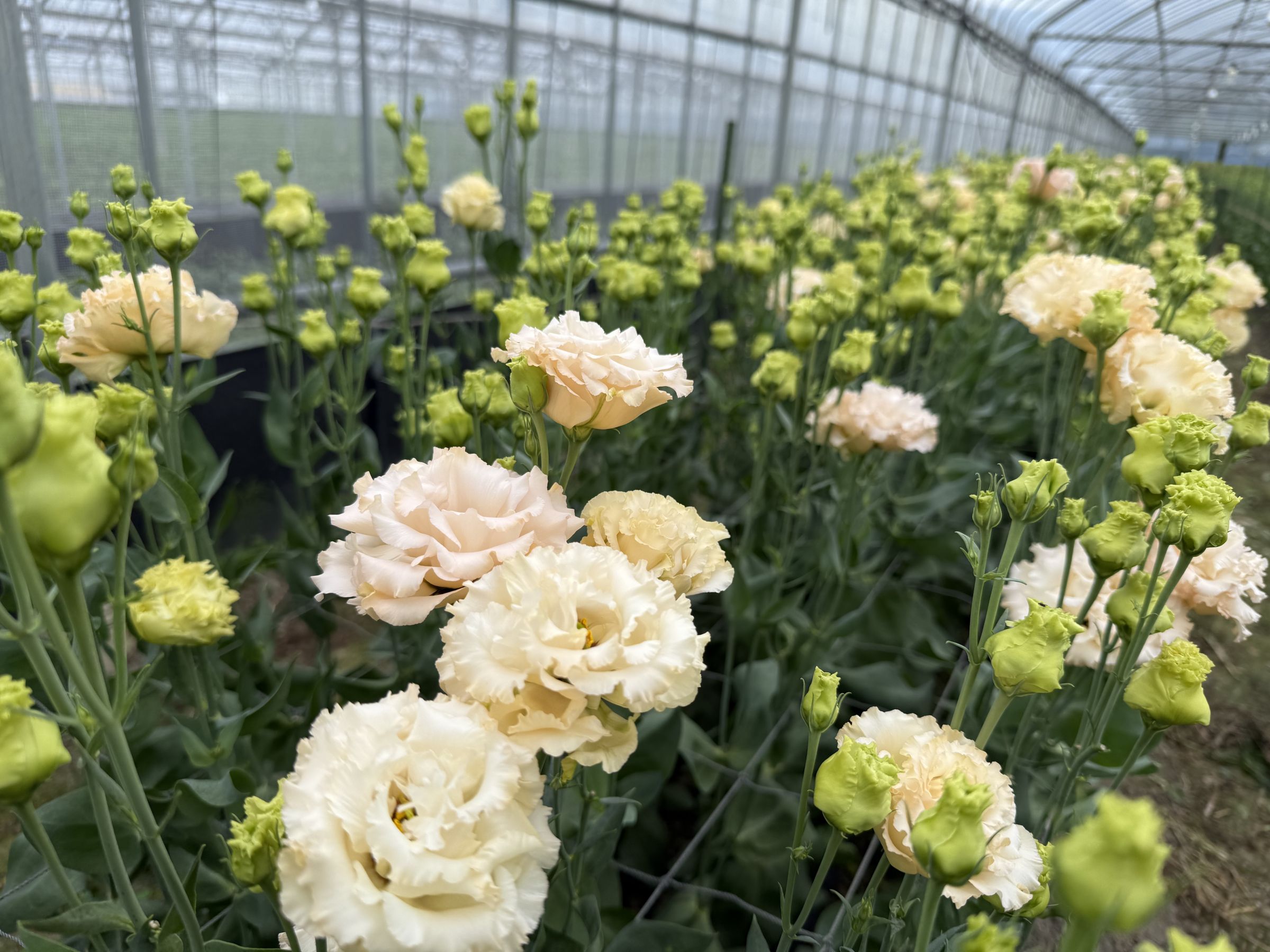 ハウスの中には見事に咲き誇った色とりどりのトルコギキョウがお出迎えしてくれて、
