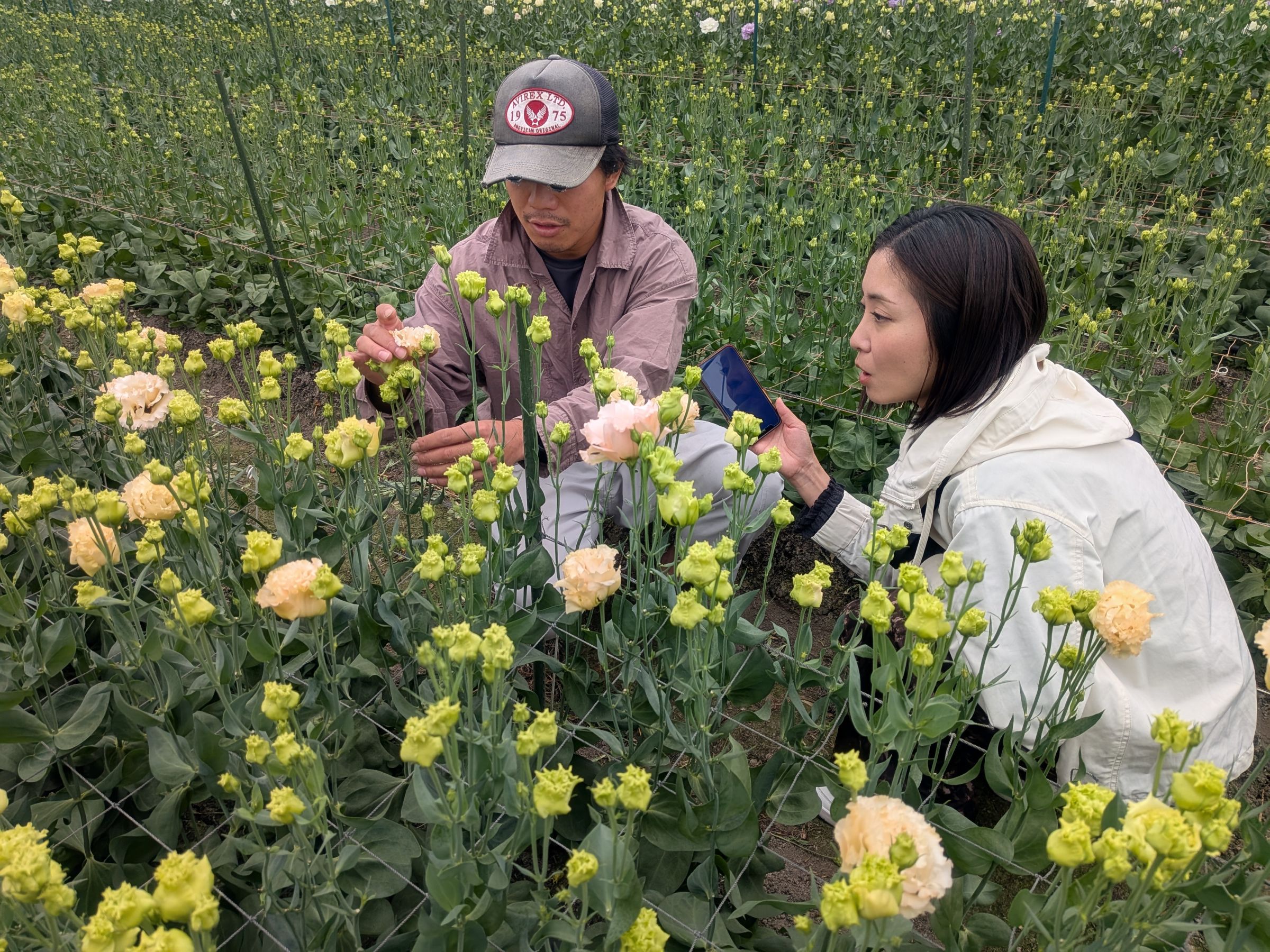 まずは7月下旬の酷暑にハウスの中で汗だくになりながら4万本の苗を定植します。水やりと肥料やりを調整しながら育て、最終的に一つの株に3つのお花が咲くように間引きをしていき、10月上旬から11月末に収穫。
