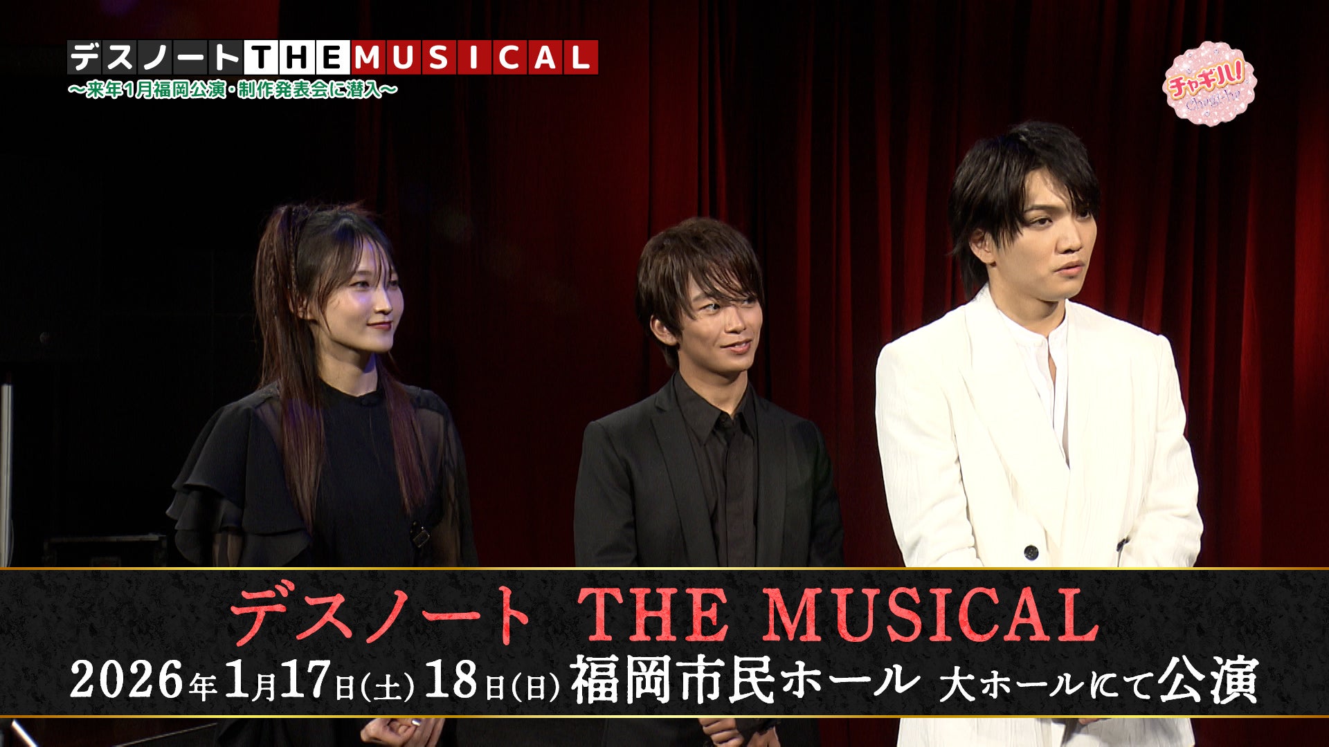 夜神月役の加藤清史郎さん、L役の三浦宏規さん、弥海砂役の鞘師里保さんに、今回の公演の見どころや福岡で楽しみにしていることなどを伺いました。