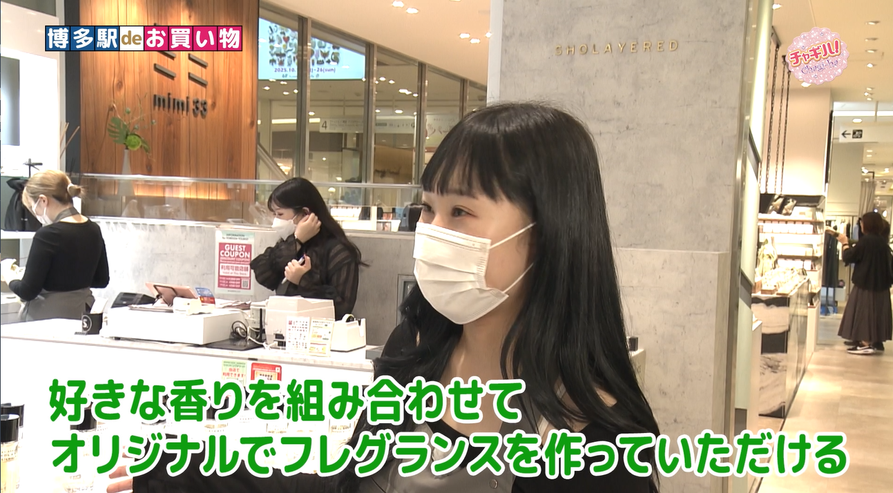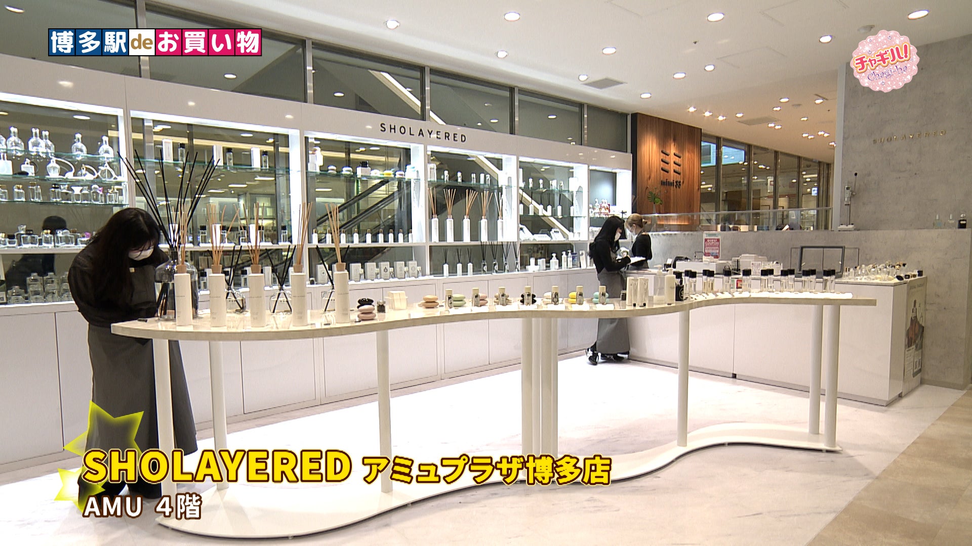 博多駅deお買い物!くにさきなるみと三角英恵の2人が訪れたのは、JR博多シティのAMU4階にある「SHOLAYERED アミュプラザ博多店」です。